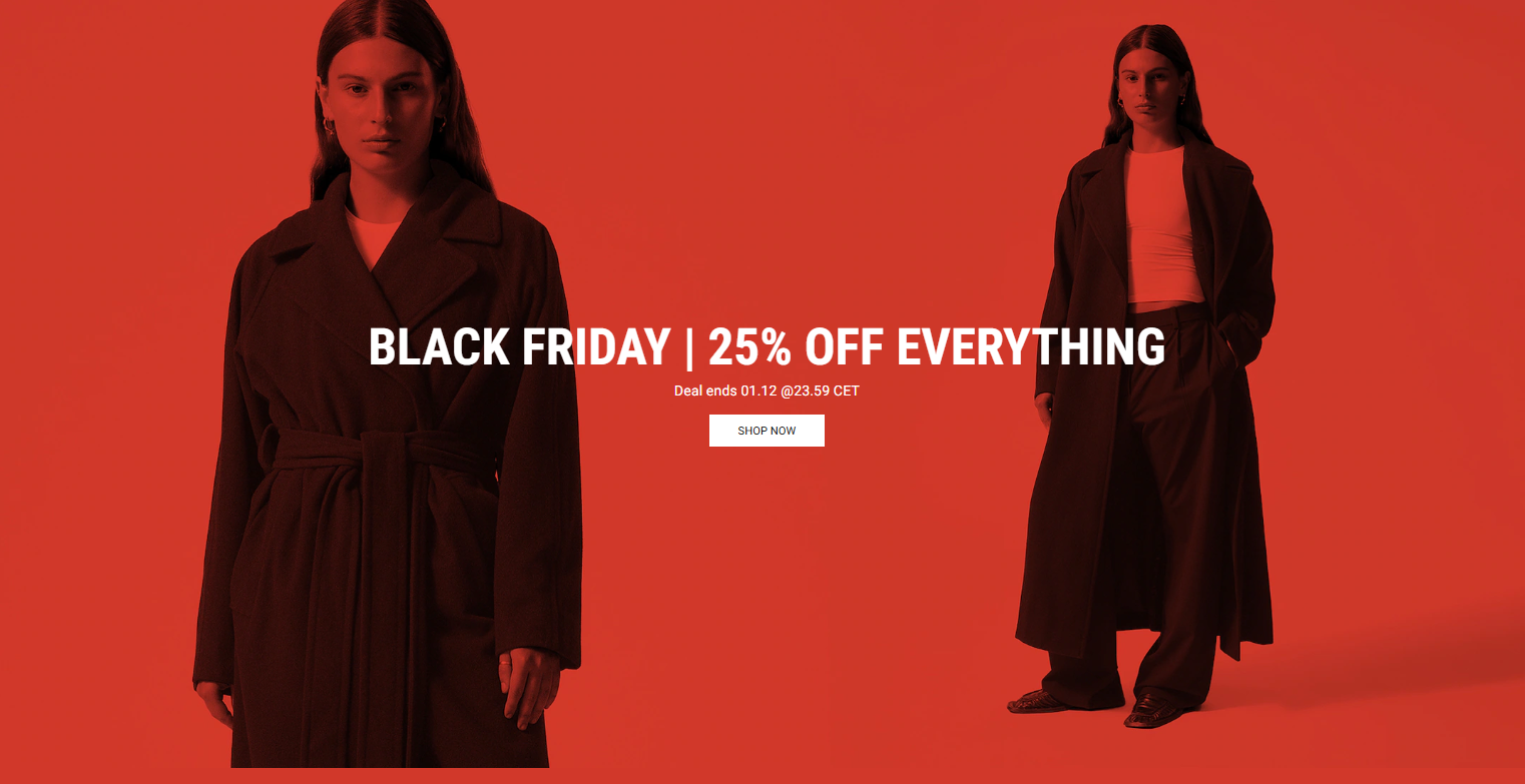 During this Black Friday sale, Weekday.com is offering up to 25% off across the entire store. Whether you’re looking for classic t-shirts, cozy sweatshirts, or fashion-forward jackets and trousers, all products will be available at amazing discounts. Get your favorite fashion pieces at unbeatable prices!